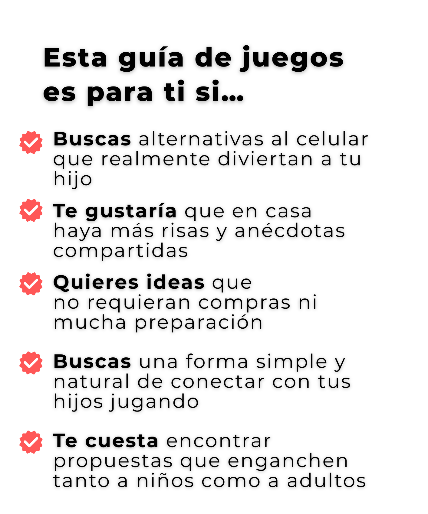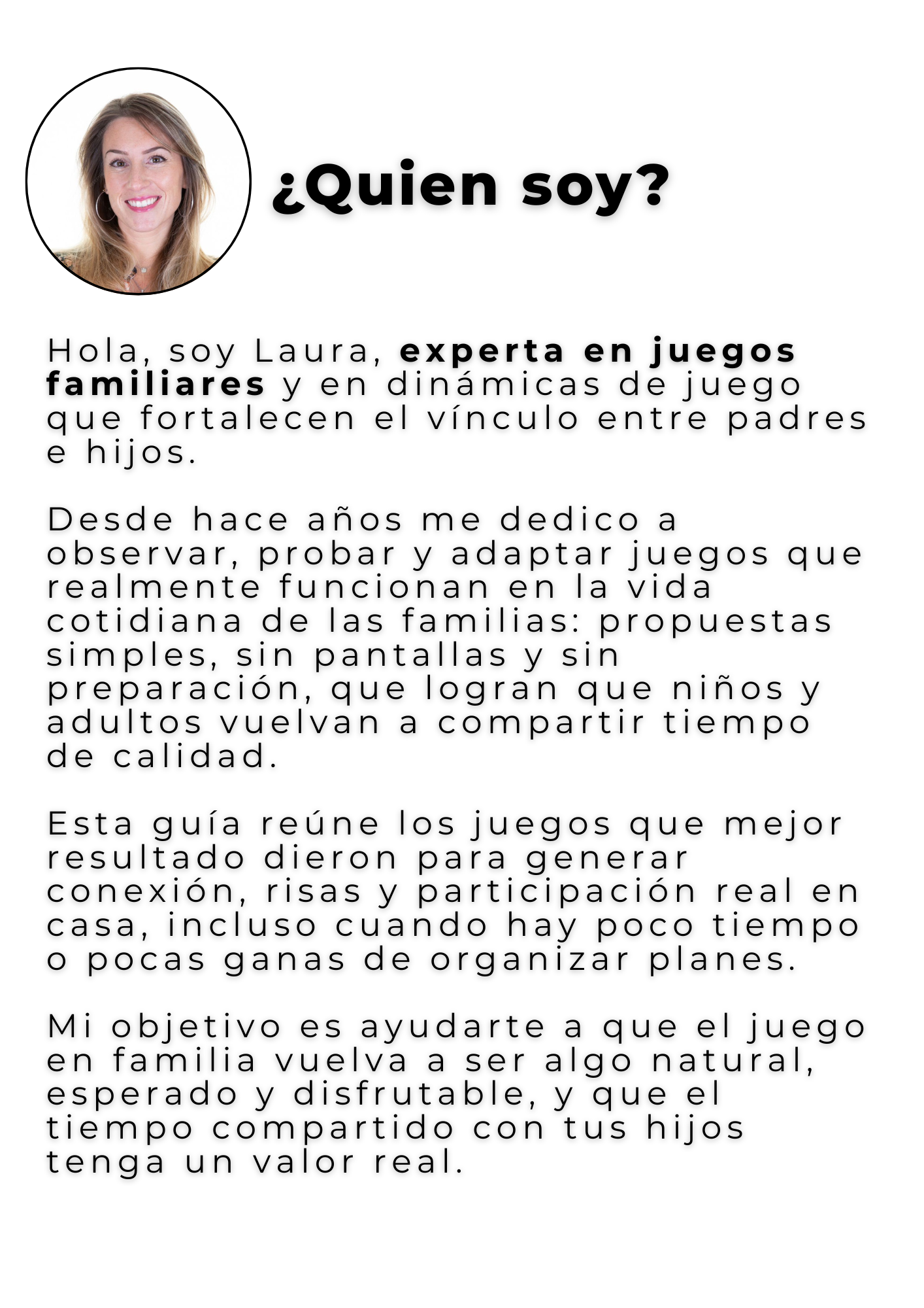 Incluye un kit digital con 5 juegos familiares listos para imprimir, pensados para distintas edades y momentos del día. Cada juego viene con instrucciones claras, variaciones y plantillas descargables.